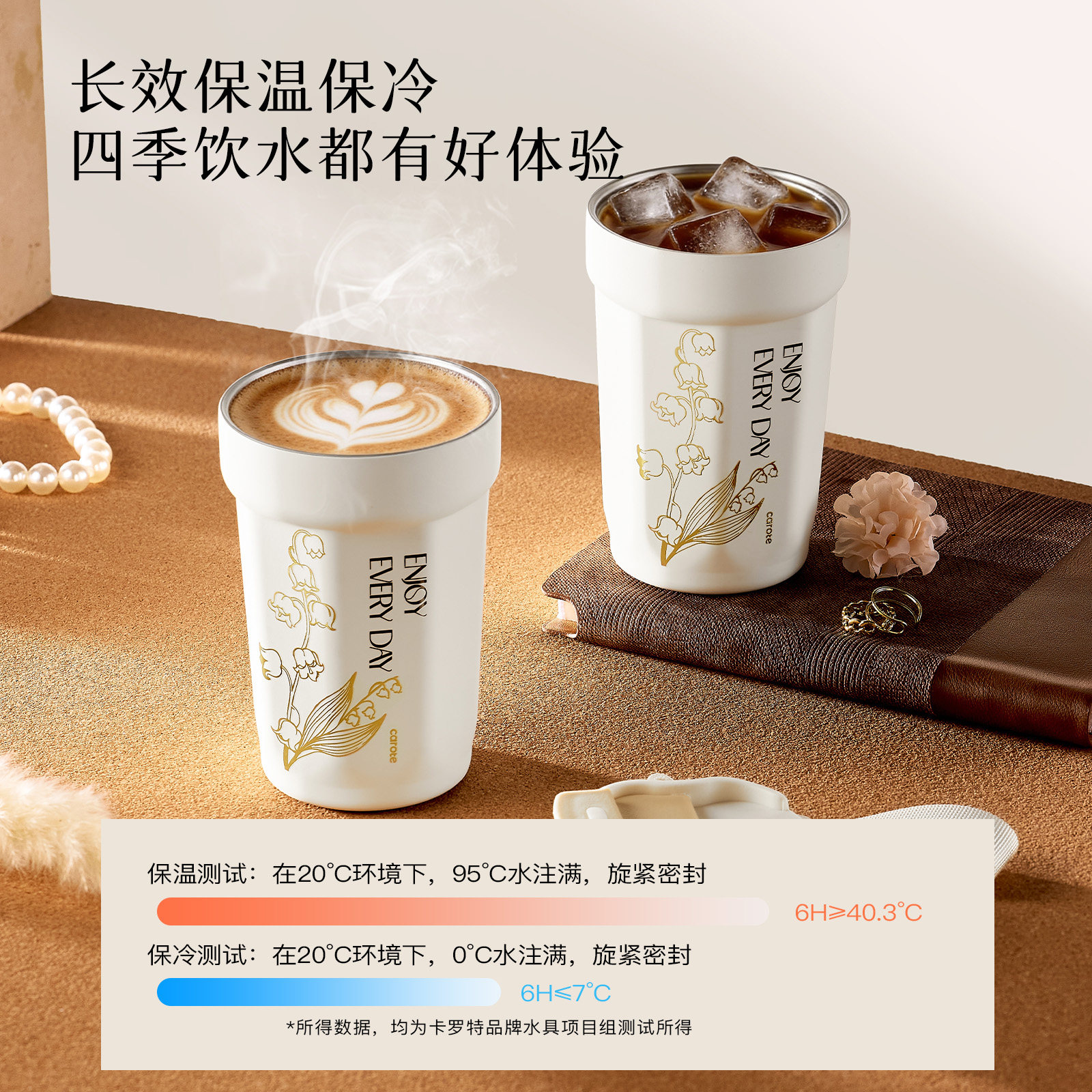 卡罗特保温杯外带咖啡杯女高颜值便携不锈钢水杯陶瓷覆层保冷杯子