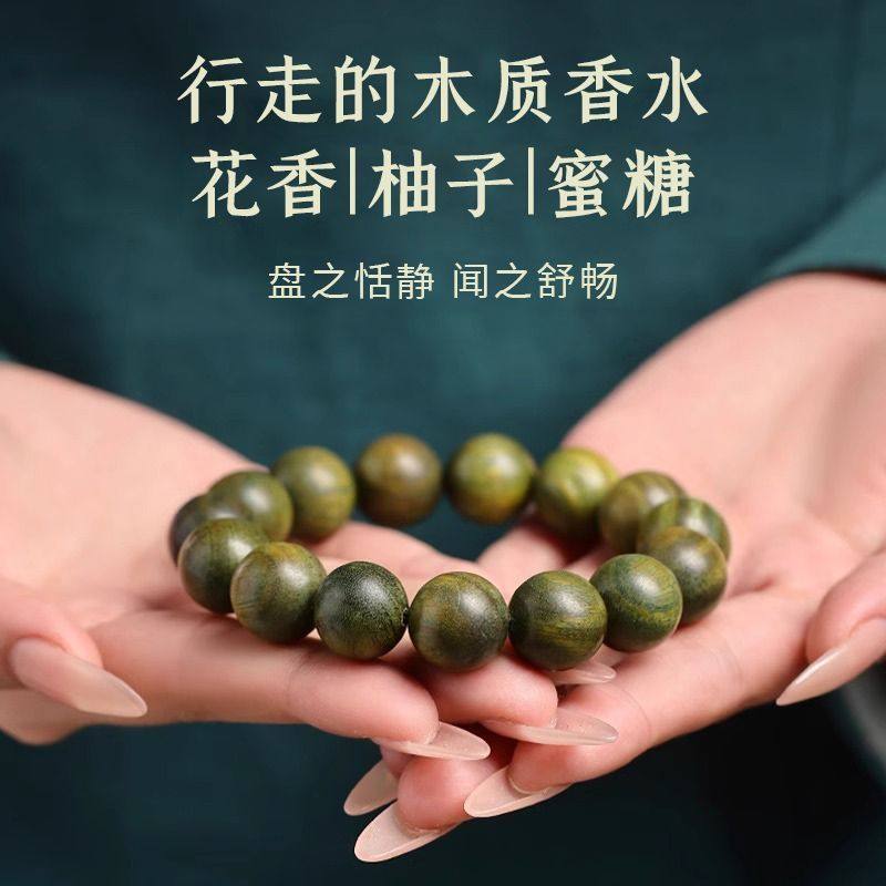 绿檀手串奶香男款念珠盘玩老檀木檀香文玩静心手链女木质佛珠安神