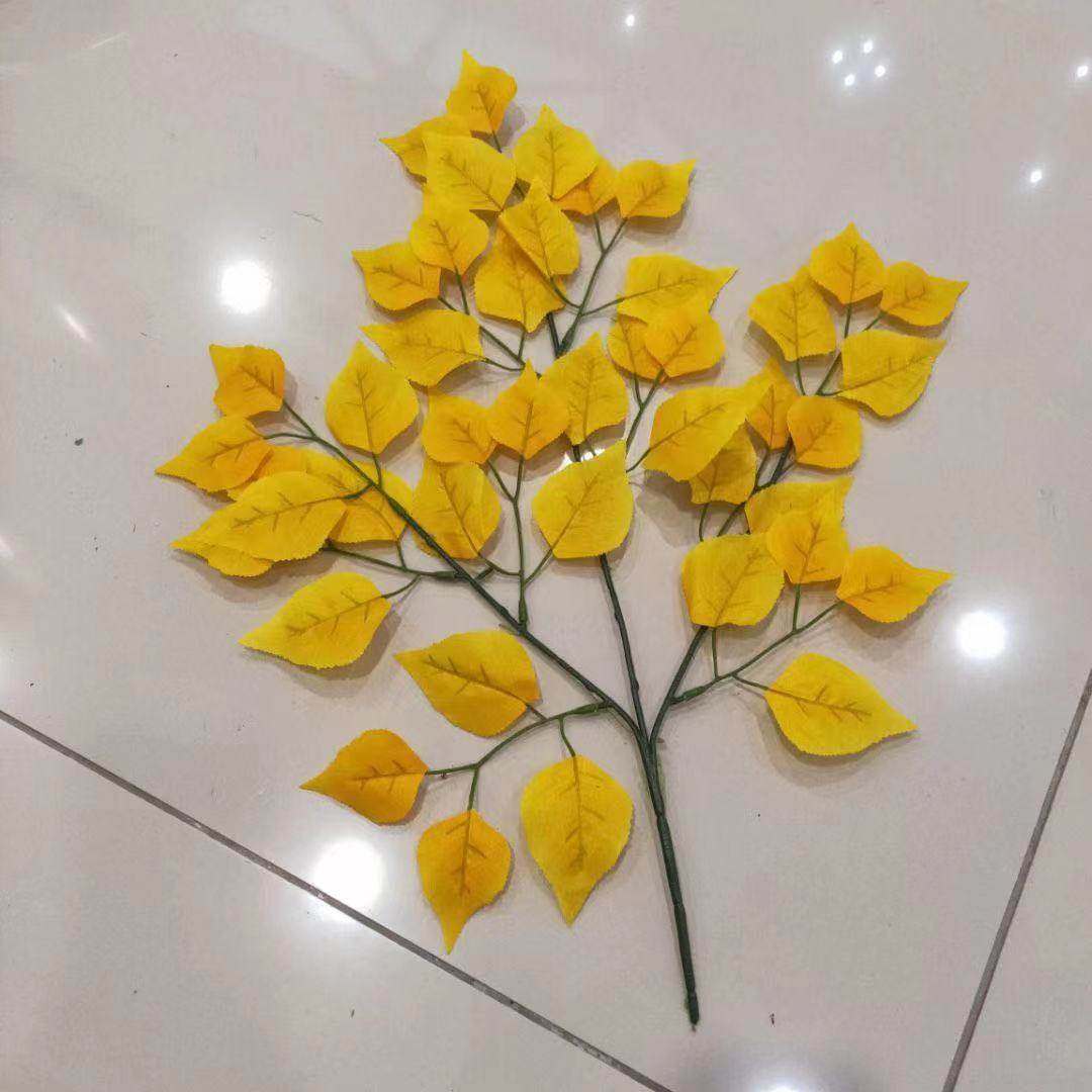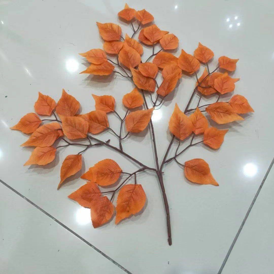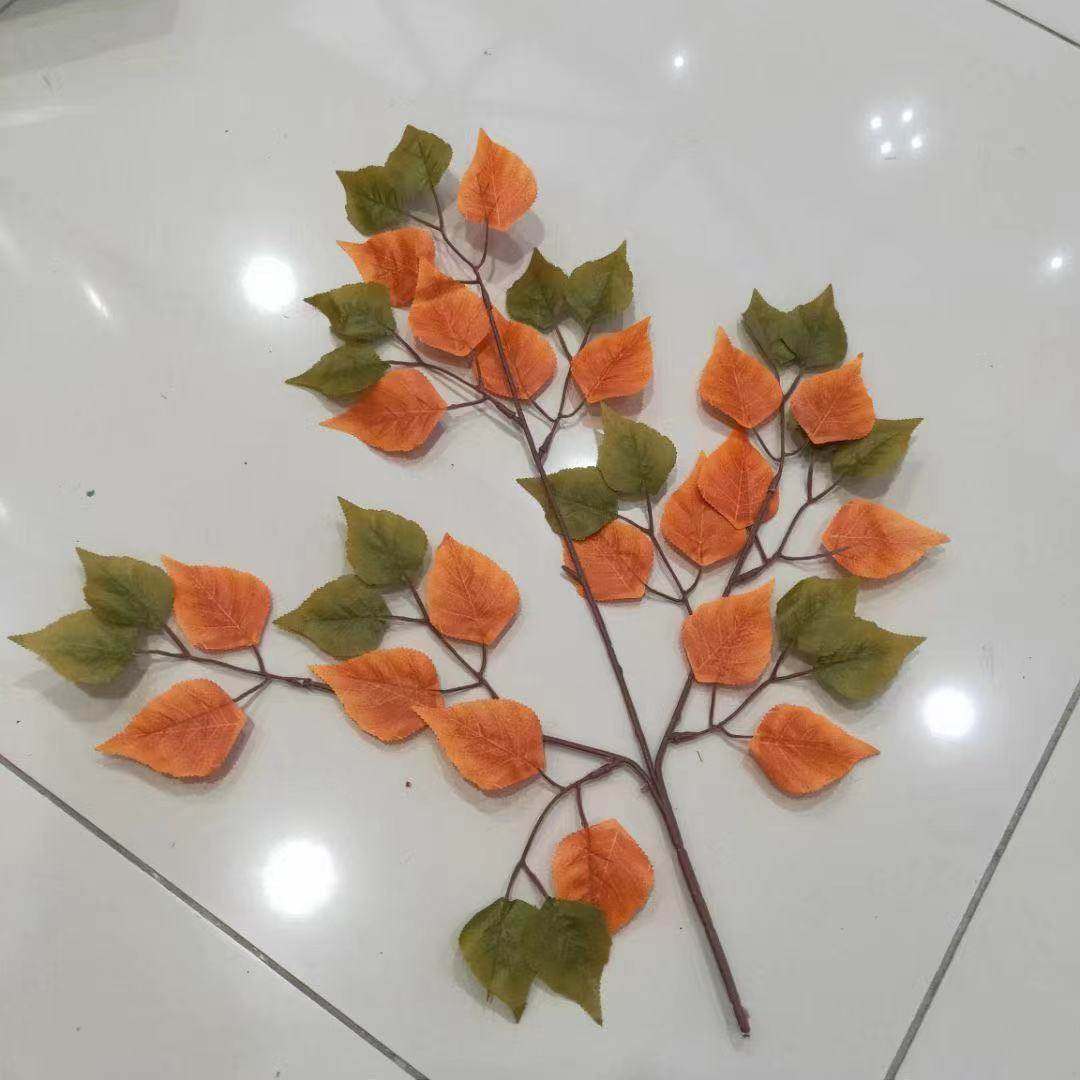 仿真桦树叶白桦叶假树枝绿植彩色叶子家居橱窗装饰假花枝胡杨树叶