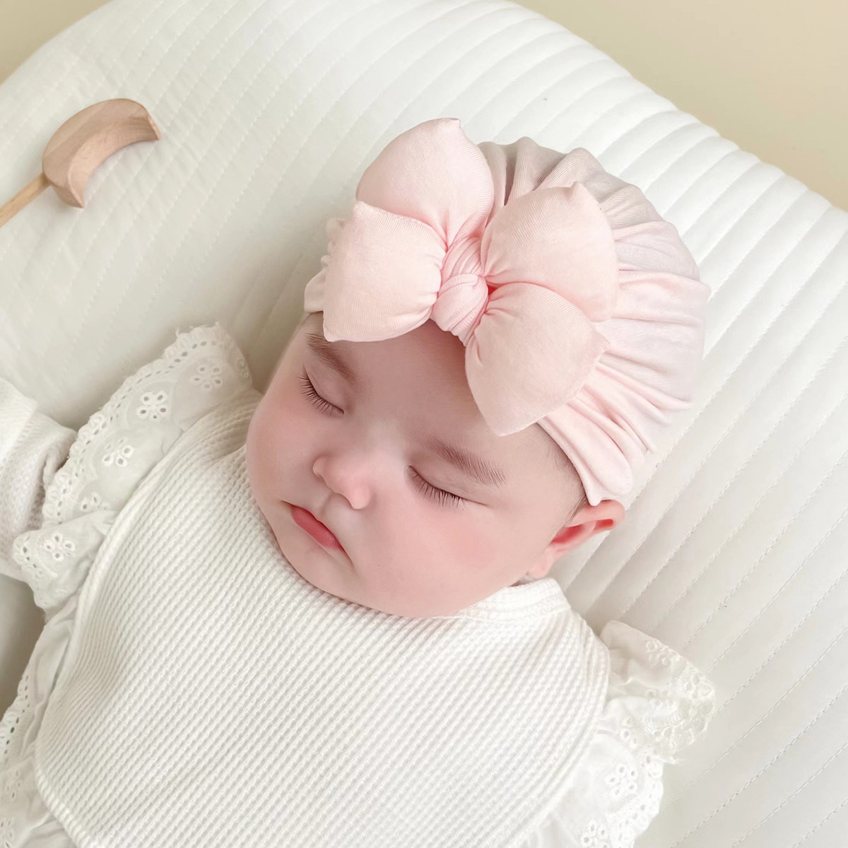 婴儿帽子春秋莫代尔ins可爱蝴蝶结护囟门新生儿小月龄宝宝胎帽冬