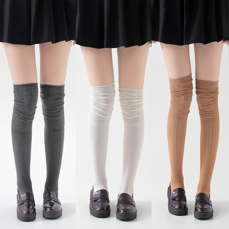 过膝袜子女秋冬款压力显瘦高筒长袜纯棉加厚保暖护膝大腿袜配长靴