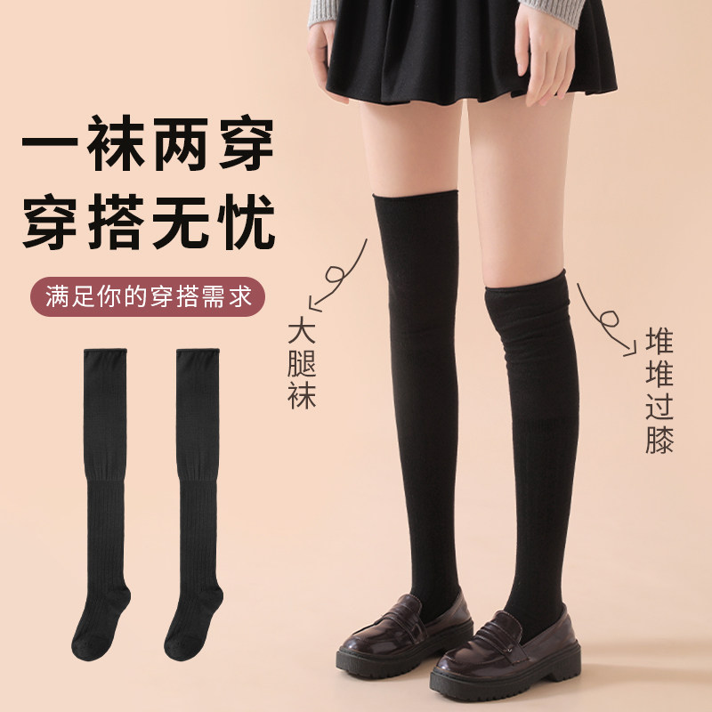 过膝袜子女高筒袜秋冬季加绒加厚保暖大腿纯色冬天半截长筒袜膝盖