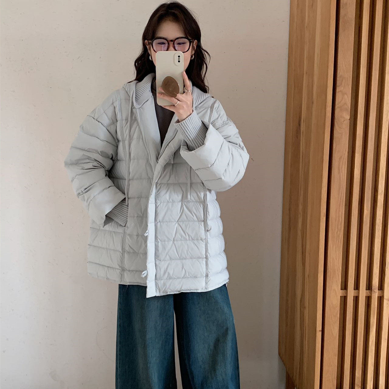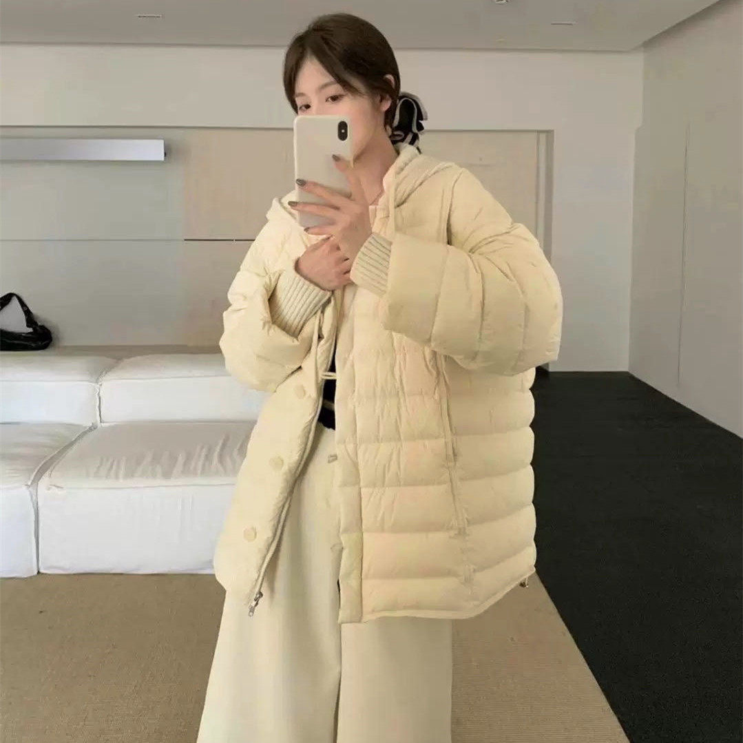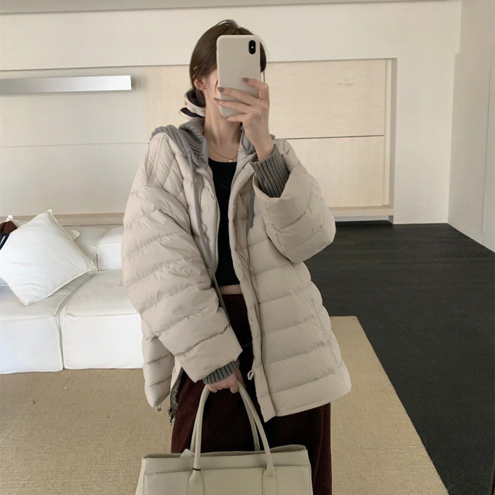 韩版2025新款可脱卸针织帽羽绒服女小个子中长款宽松保暖休闲外套