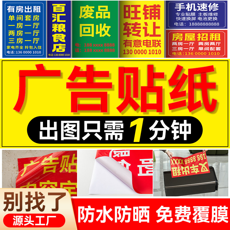 广告贴纸免费设计餐馆pvc定制不干胶菜单防水防晒黑胶户外自粘背胶价格表贴海报喷绘
