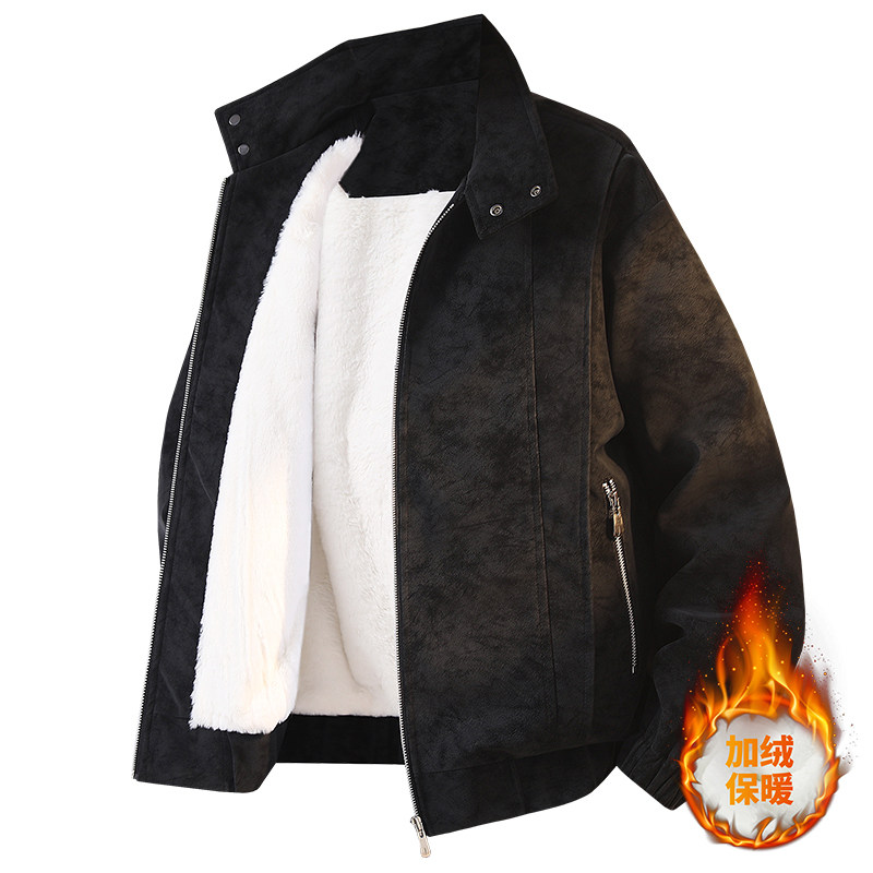 回力美式翻领加绒皮衣外套男士秋冬季2025新款加厚PU皮夹克机车服