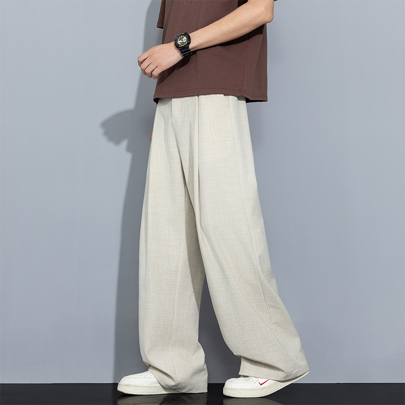 回力棉麻休闲裤子男士春夏季2026新款薄款直筒西装裤宽松垂感西裤