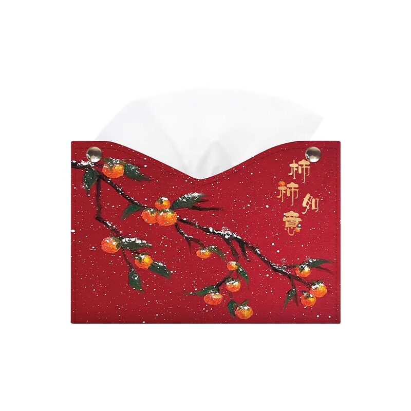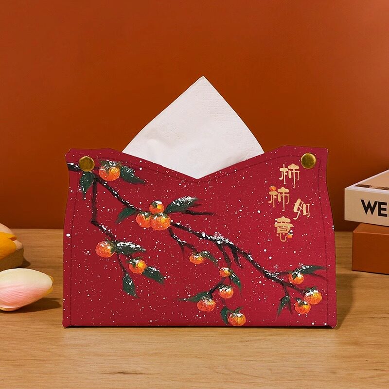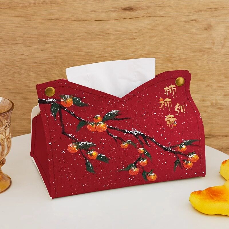 柿柿如意喜庆油画抽纸盒家用客厅茶几新中式纸巾套桌面纸巾收纳盒
