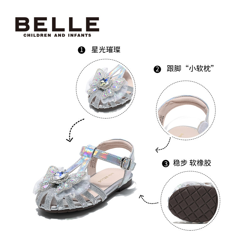 百丽童鞋女童凉鞋小女孩公主鞋夏季2026新款儿童包头鞋宝宝软底鞋