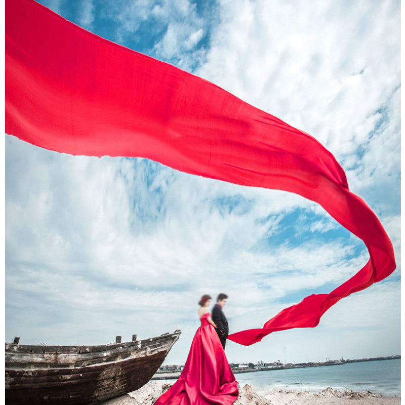 新款婚纱摄影道具海边拍照道具纱布 飘逸红布 红色飘纱10米