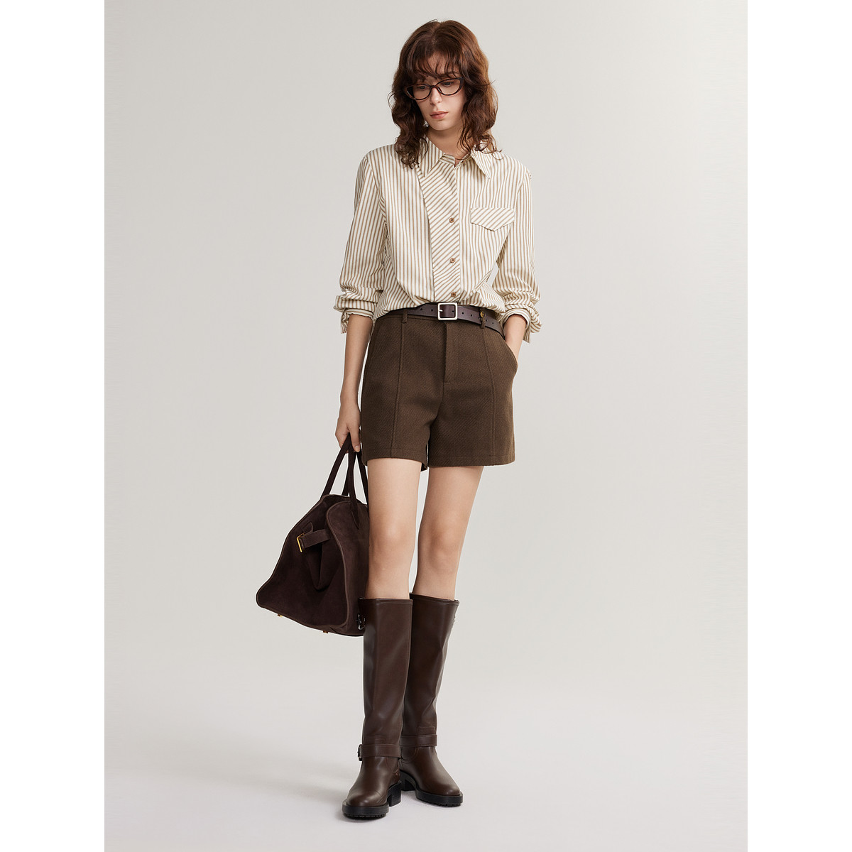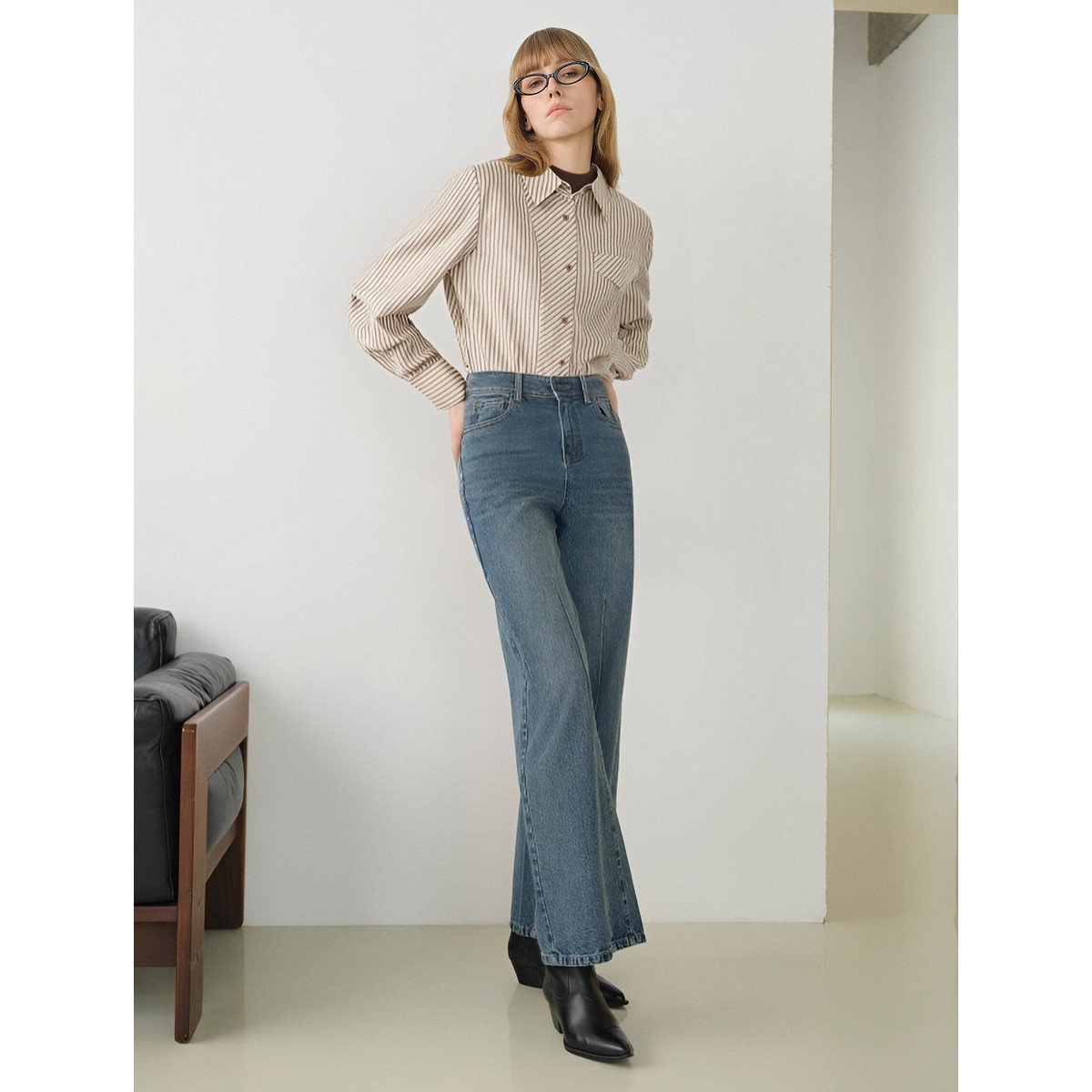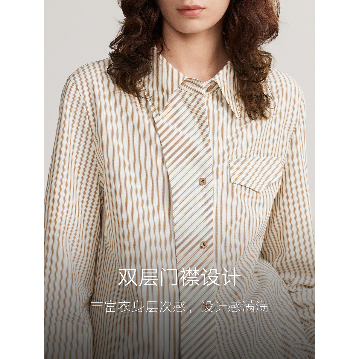 100棉|罗蒙春秋女士长袖衬衫竖条纹休闲百搭宽松衬衣女上衣外套