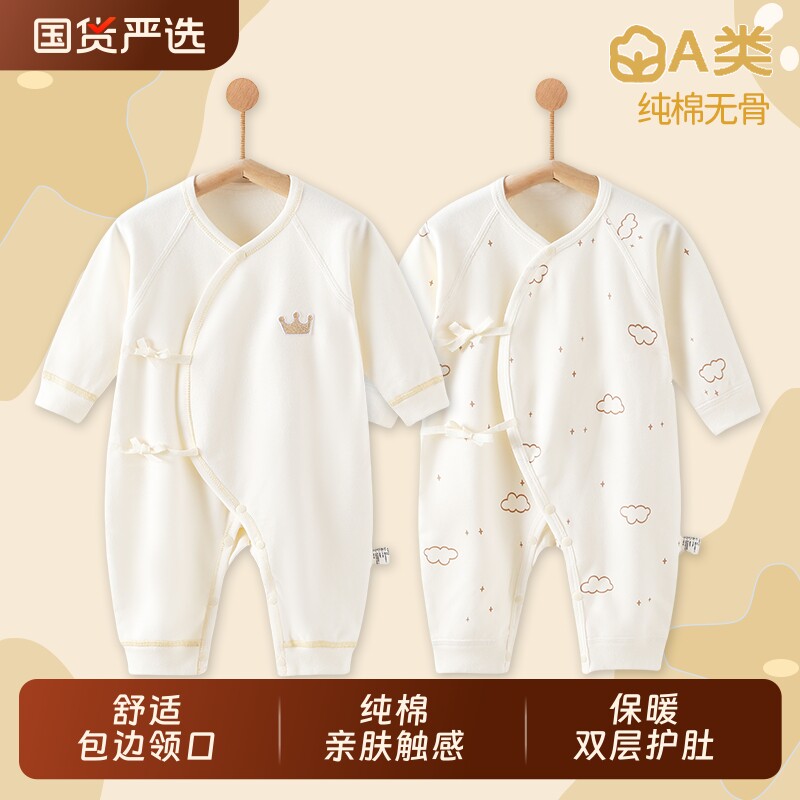 婧麒新生儿婴儿衣服秋冬夹棉满月纯棉初生宝宝秋装连体衣a类爬服