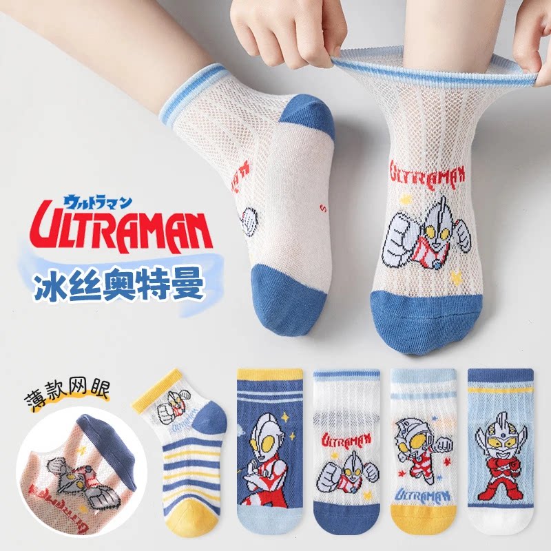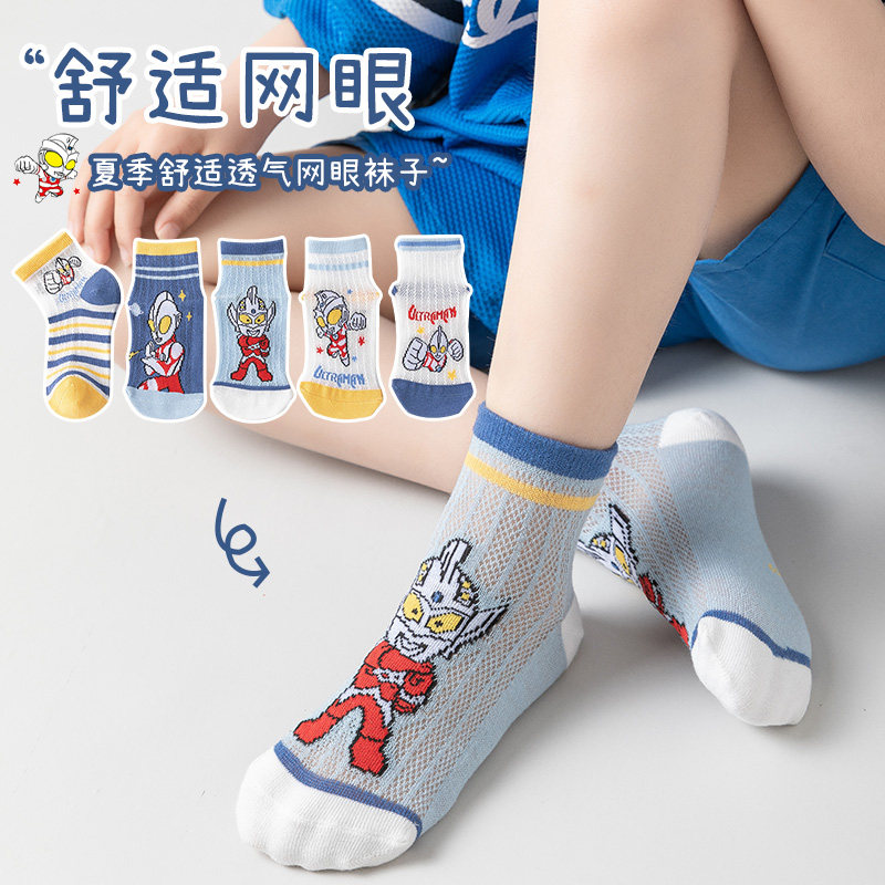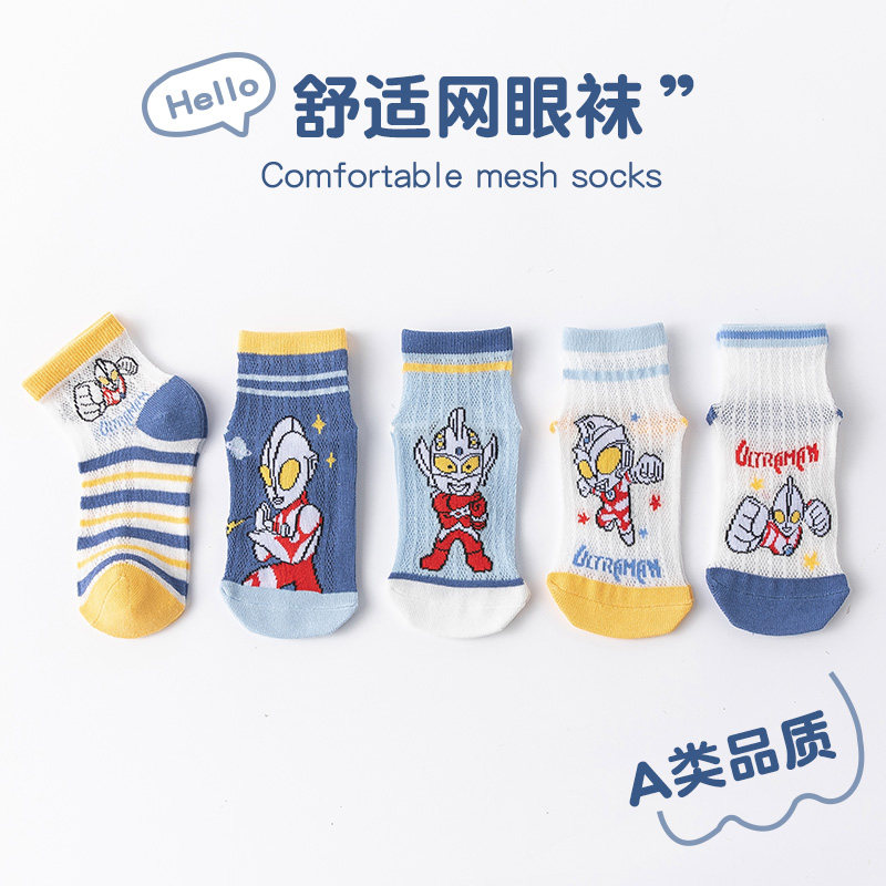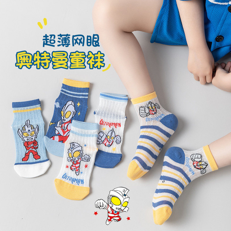奥特超人袜子男童夏季薄款短筒袜男孩夏天透气卡通网眼防臭袜中筒