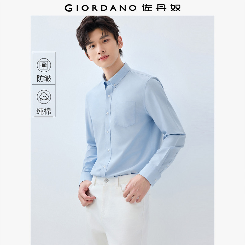 佐丹奴2026年春季新款防皱纯棉单口袋商务正装长袖衬衫男01045101