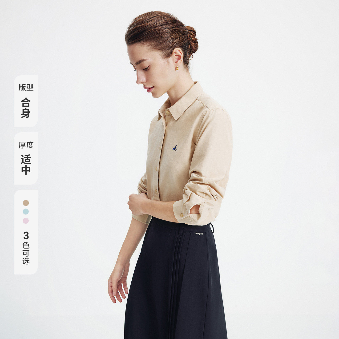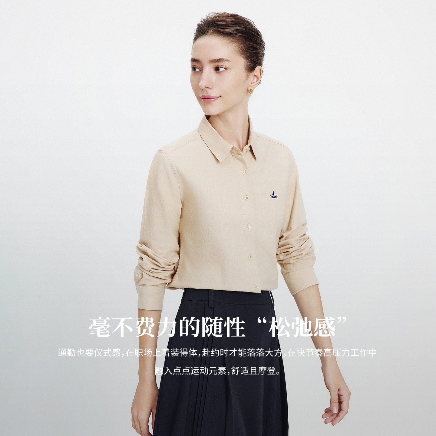 [纯棉]Navigare意大利小帆船纯棉长袖衬衫女春季新款通勤百搭衬衣