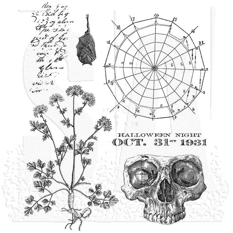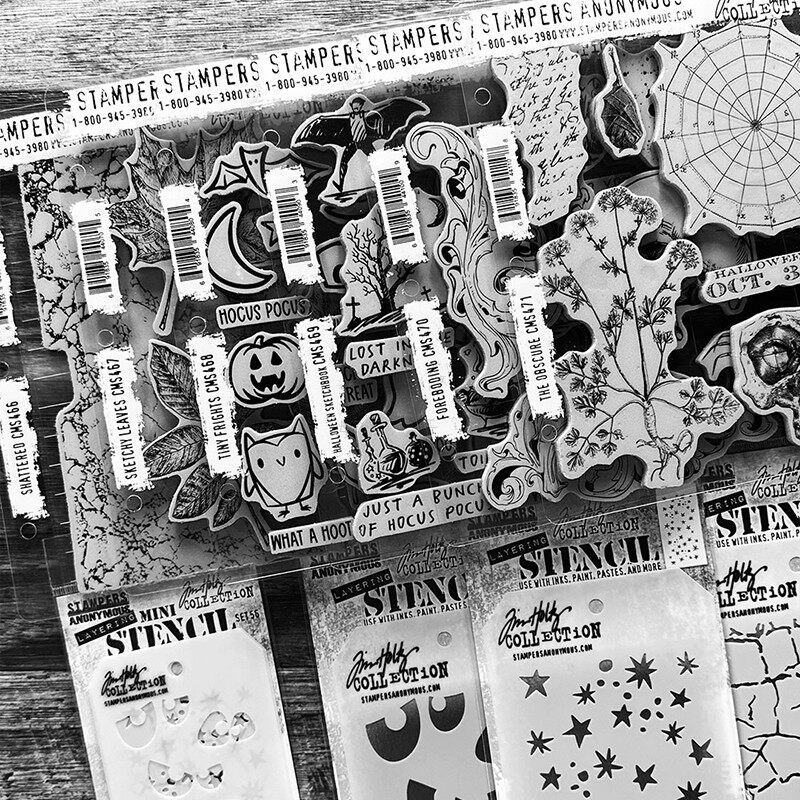 Tim Holtz万圣复古橡胶泡棉印章骷髅秋天落叶裂纹2023