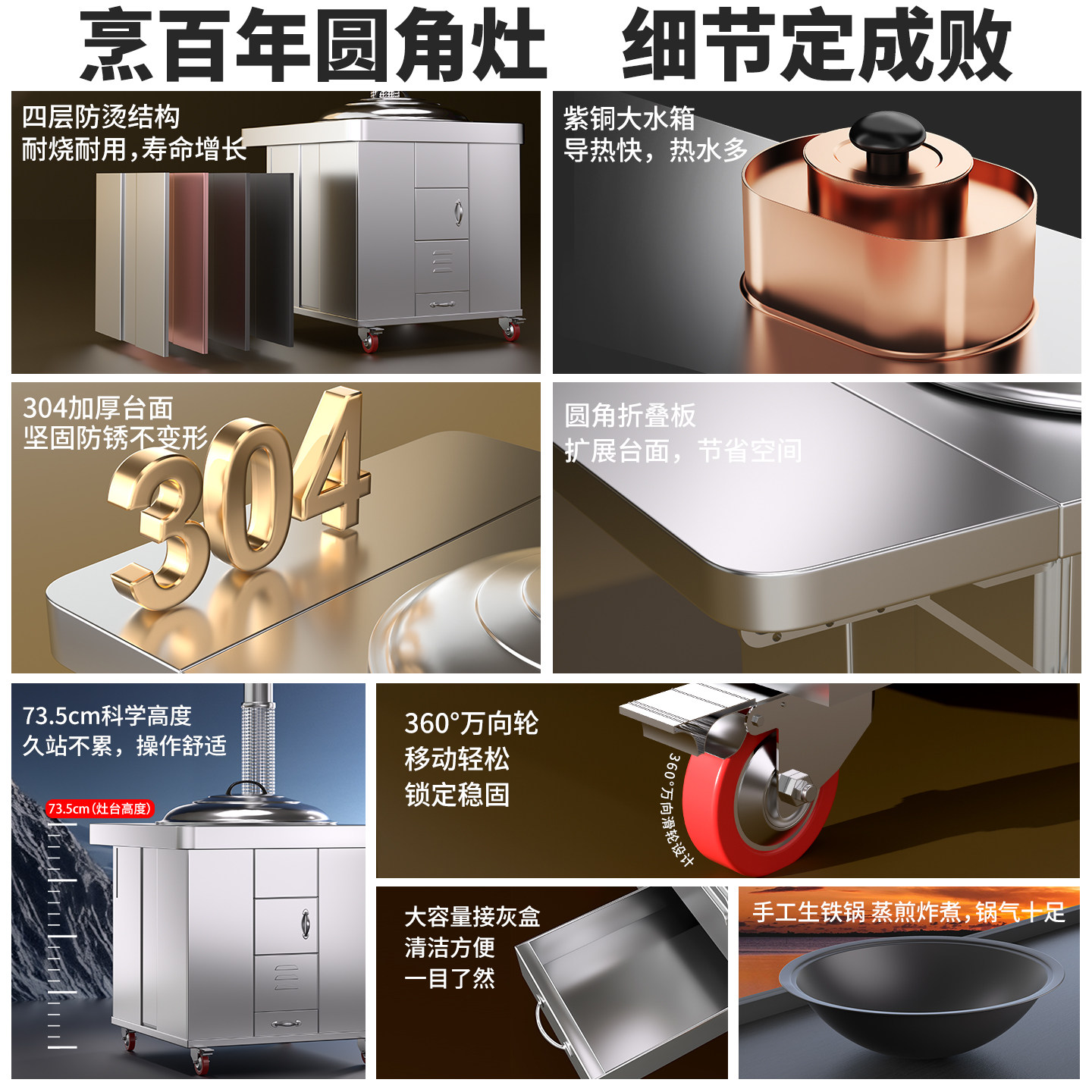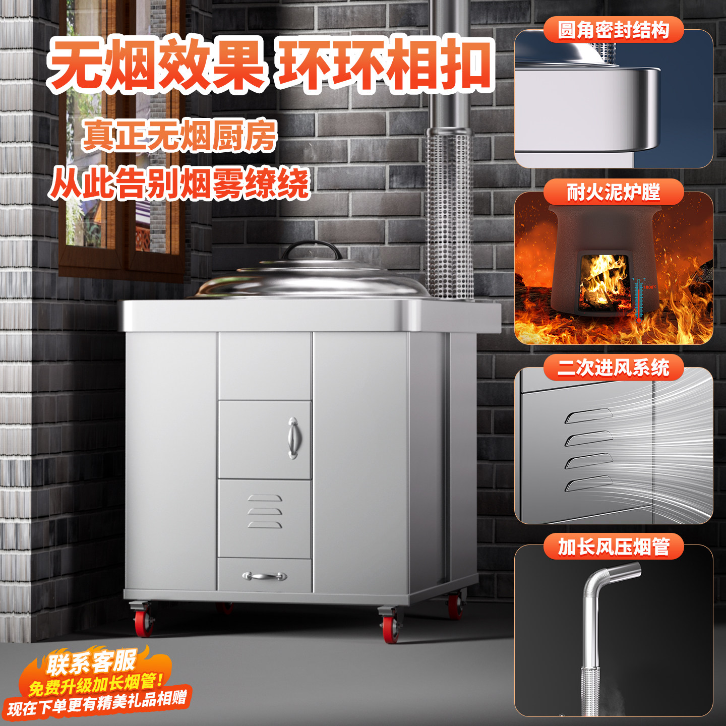 304不锈钢柴火灶农村家用移动大铁锅户外烧木柴无烟柴火炉铁锅炖