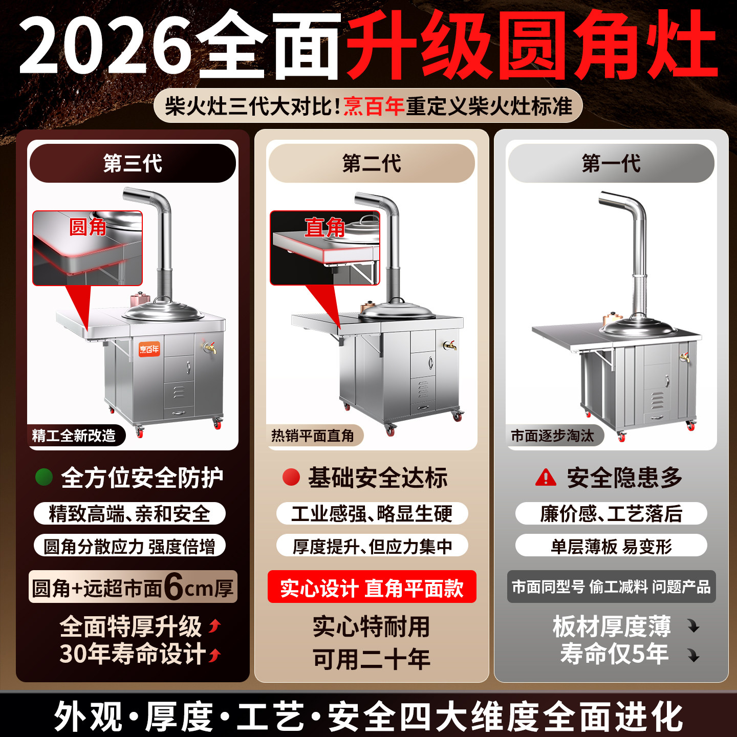 新款双折板柴火灶烧木柴家用农村大铁锅土灶台不锈钢无烟户外炉灶