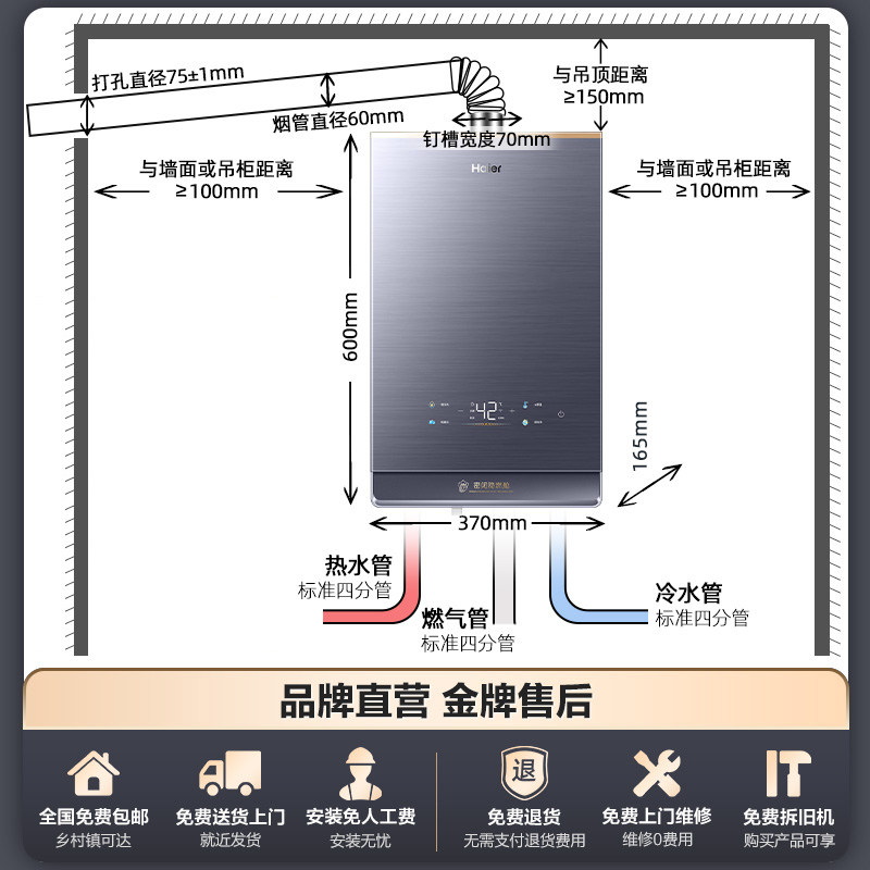 海尔燃气热水器KL7天然气16L家用恒温增压大水量