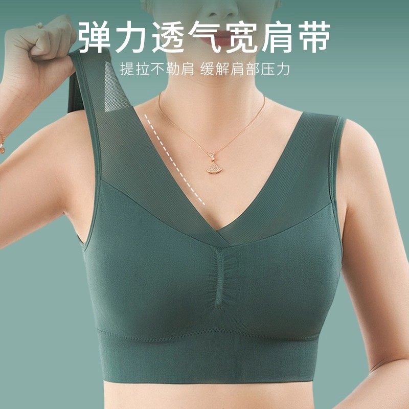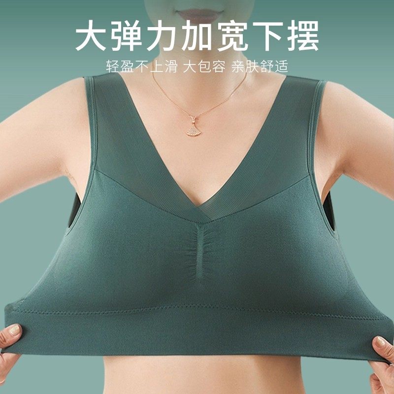 中老年妈妈背心式大码内衣薄款透气舒适胸罩无钢圈收副乳聚拢运动