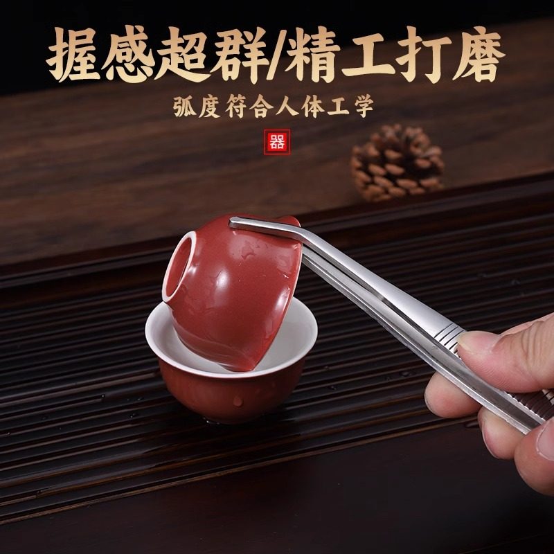 茶夹子茶镊子铜茶夹防滑杯夹功夫茶具配件不锈钢茶杯夹子泡茶镊子