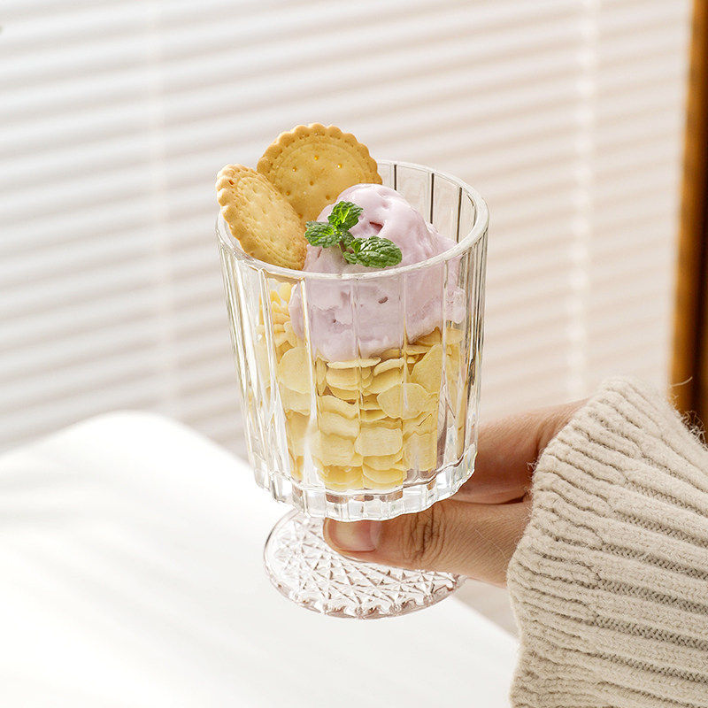 竖条纹矮款脚杯子ins高颜值家用玻璃杯饮料果汁水杯洋酒杯冰淇淋