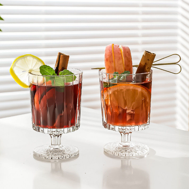 ins风玻璃高脚杯 高颜值果茶杯苏打气泡水杯果汁冷饮品杯鸡尾酒杯