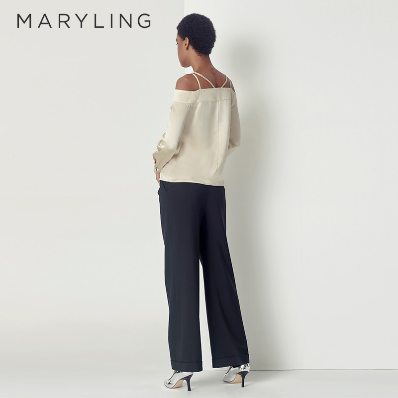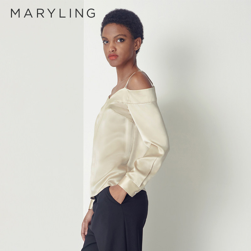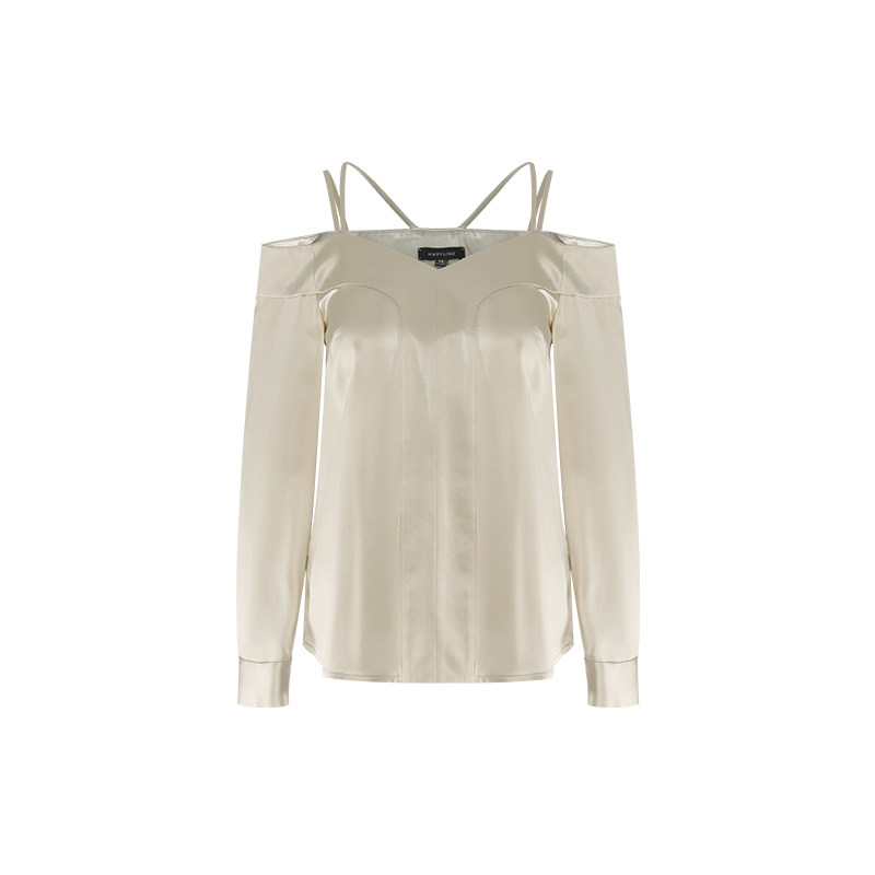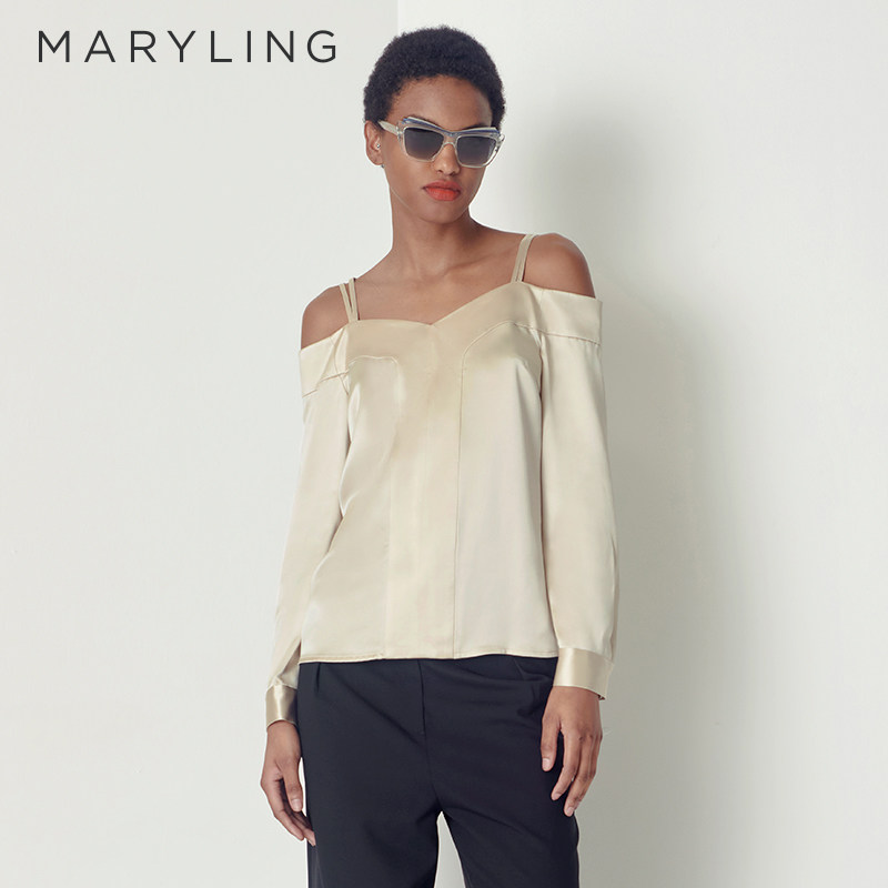 MARYLING玛俪琳秋季暖杏色光面露肩吊带长袖上衣A1CFW20010