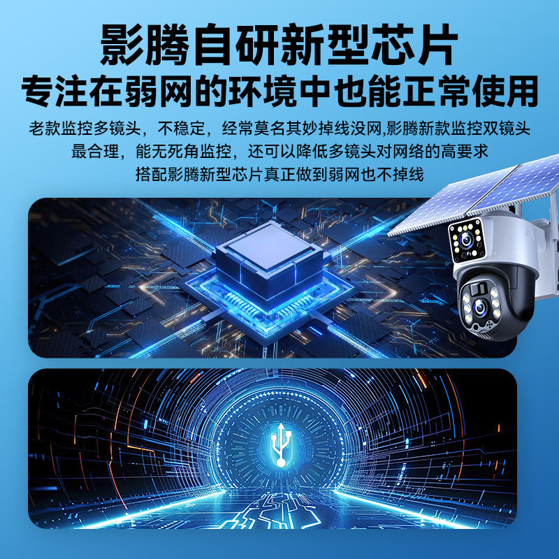 影腾4G太阳能摄像头监控器户外360度无死角手机远程无网无电室外