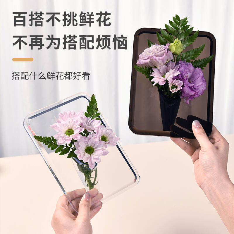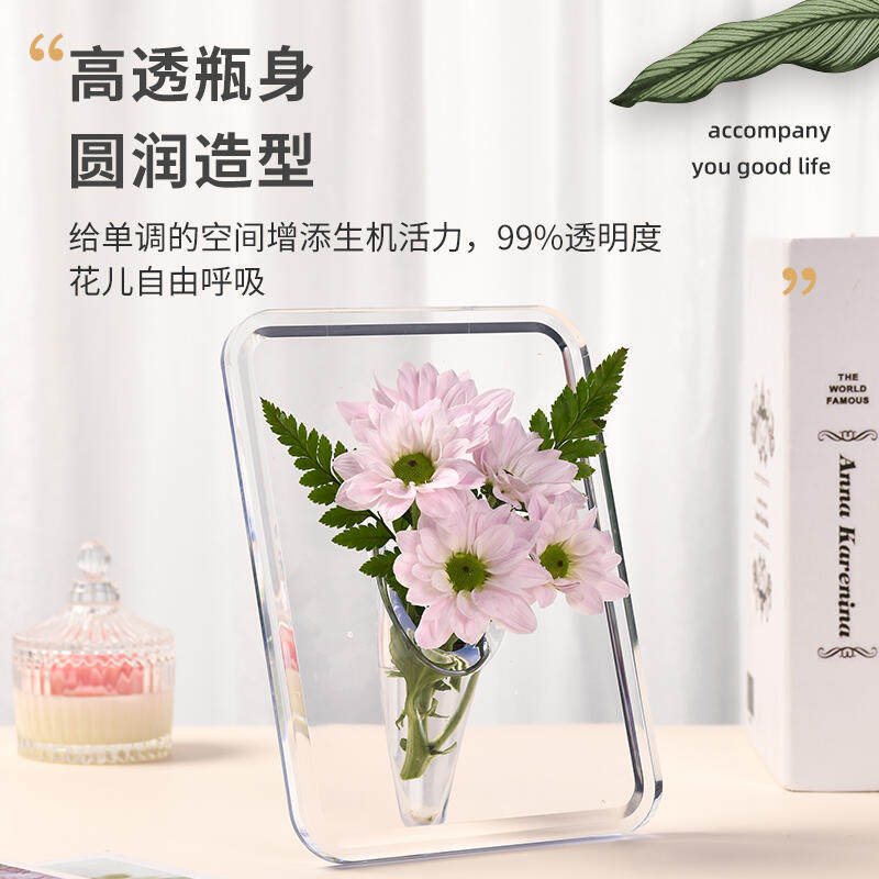 相框花瓶亚克力透明水培插花水养绿植摆件客厅桌面玄关轻奢高级感