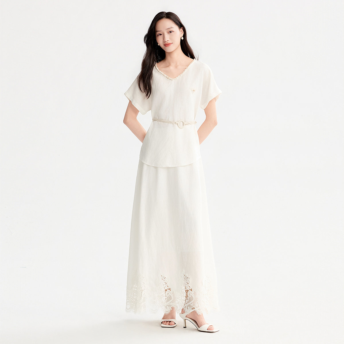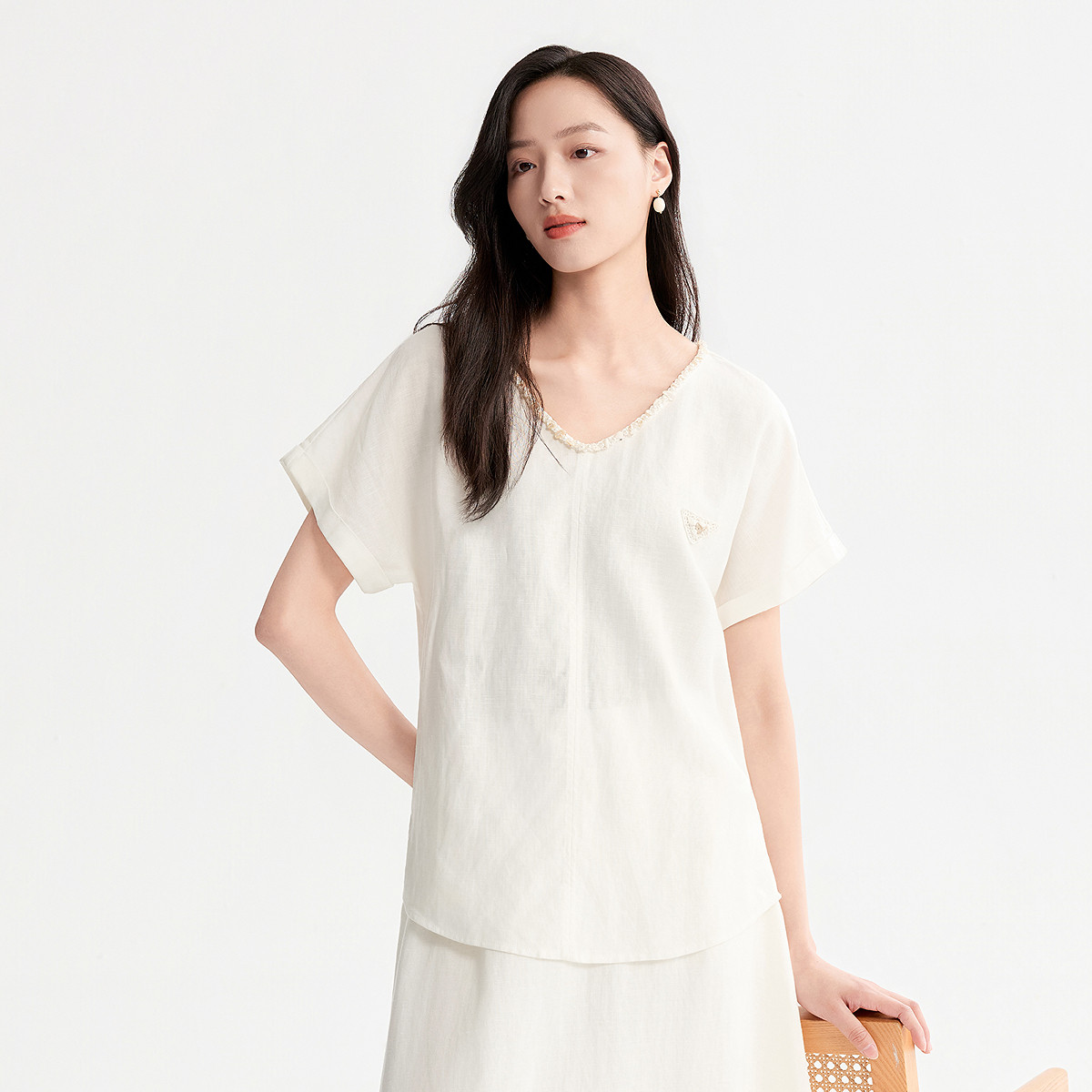 FINITY菲妮迪雪纺衫26年夏季新款简约V领气质优雅薄款短袖上衣女