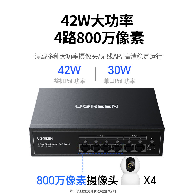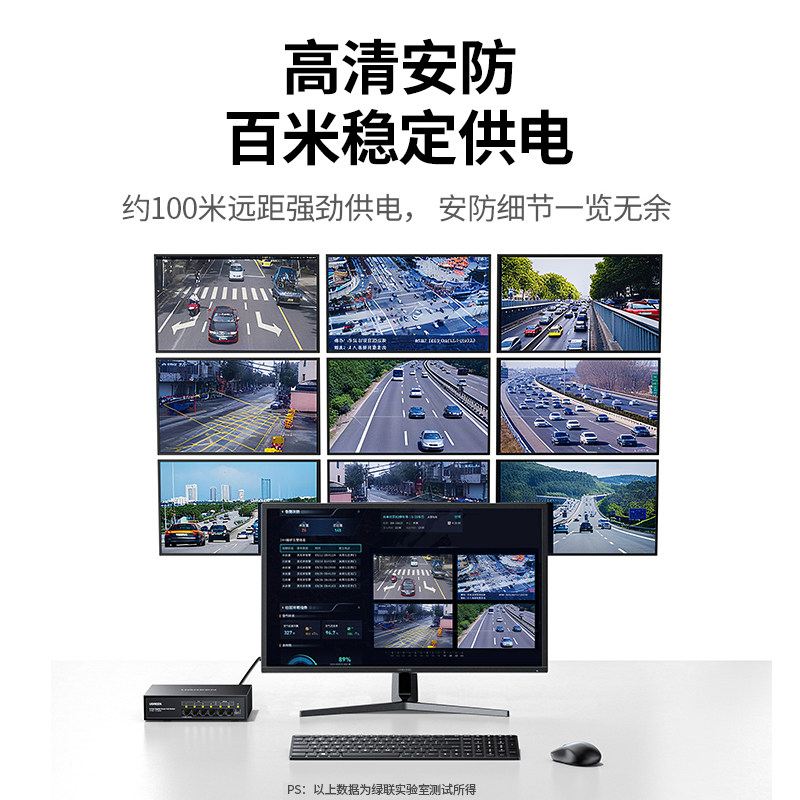 绿联poe交换机4/5/8口百兆千兆网络摄像头供电转换器网线路由网络以太网宽带扩展分线器家用企业安防监控适用