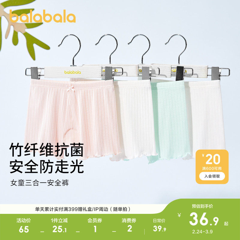 巴拉巴拉女童内裤平角裤宝宝安全裤防走光儿童短裤四角抗菌两条装