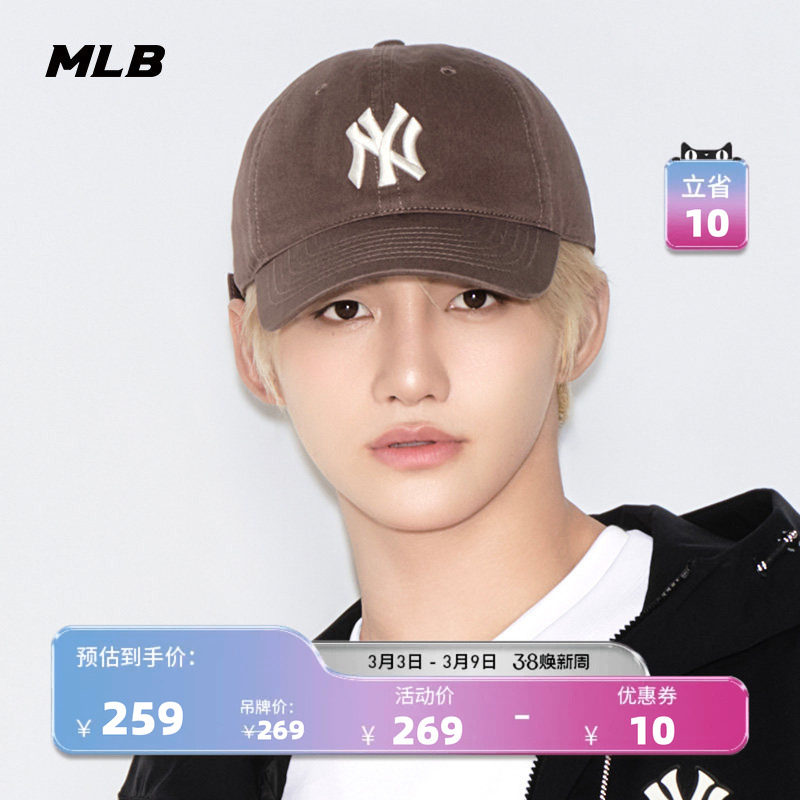 MLB官方 张康乐同款男女韩系时尚软顶棒球帽休闲百搭鸭舌帽CP77