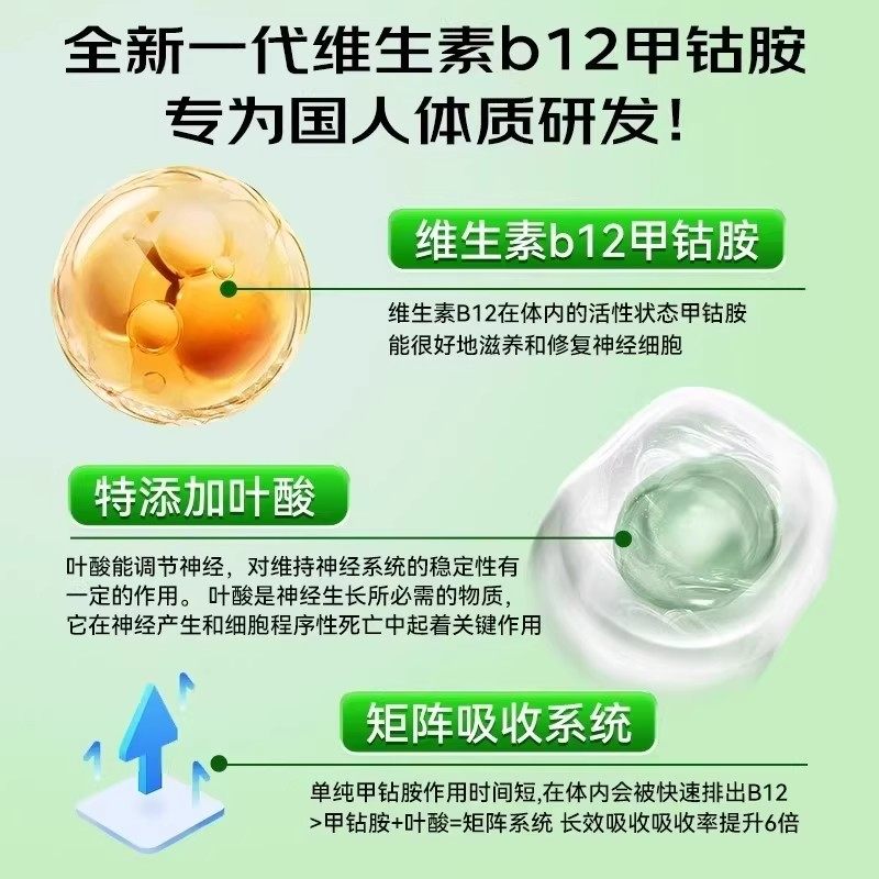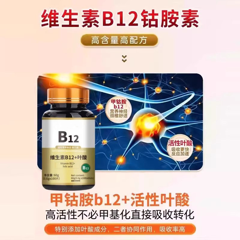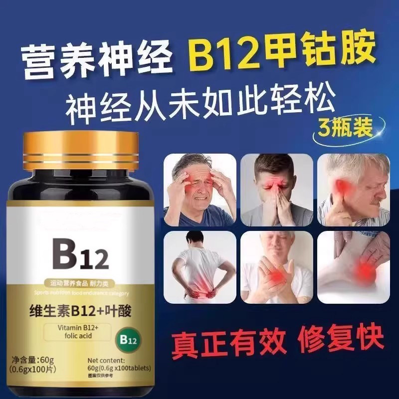 维生素b12100片和叶酸营养甲钴胺修复神经正品官方旗舰店膳食健康