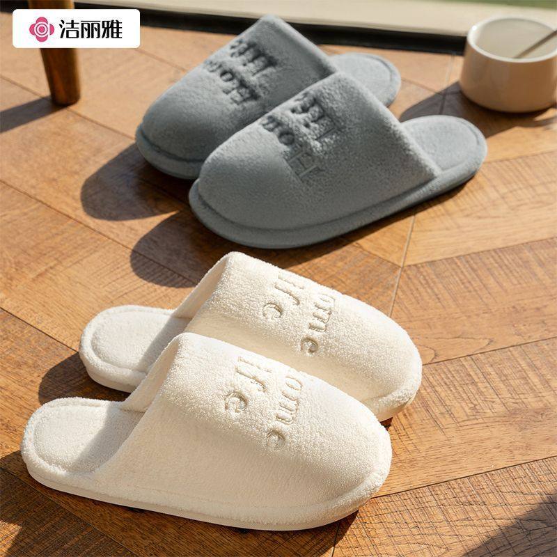 洁丽雅秋棉拖鞋女冬季家用家居室内厚底保暖防滑抗菌防臭男耐磨