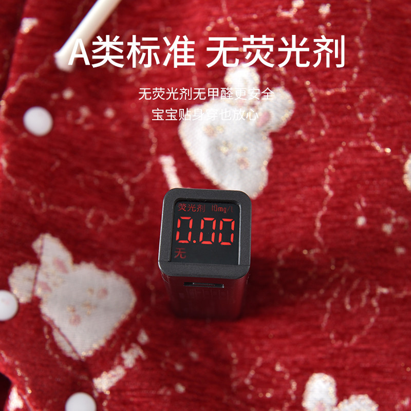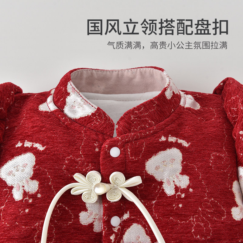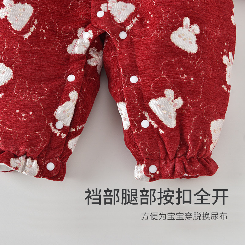 婧麒新生婴儿拜冬年服连体衣满月宝宝新年居家爬服外出抱抱服冬装
