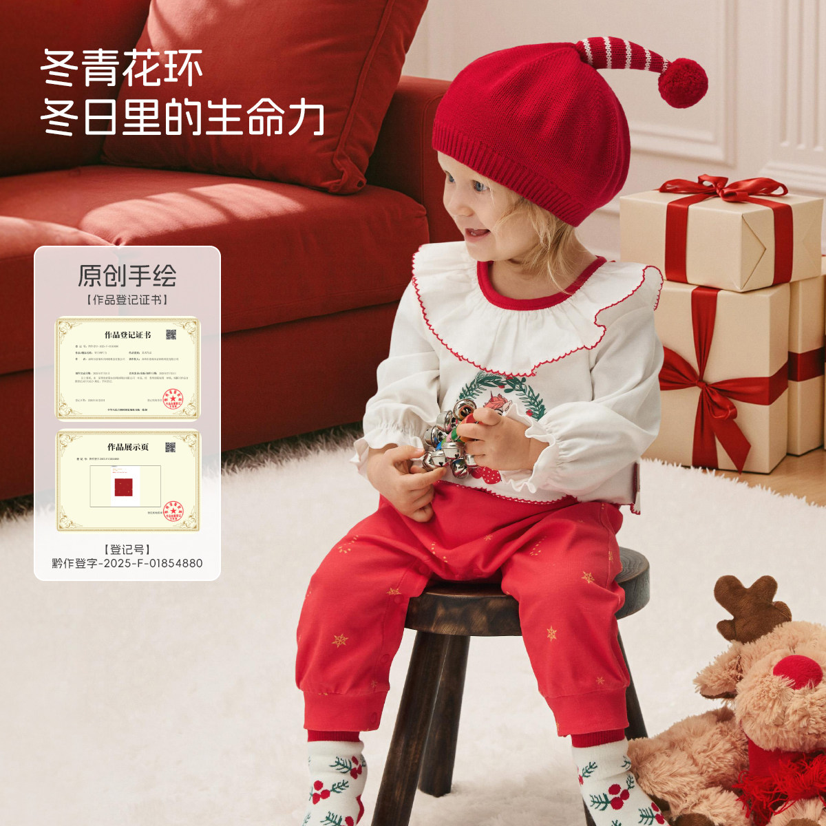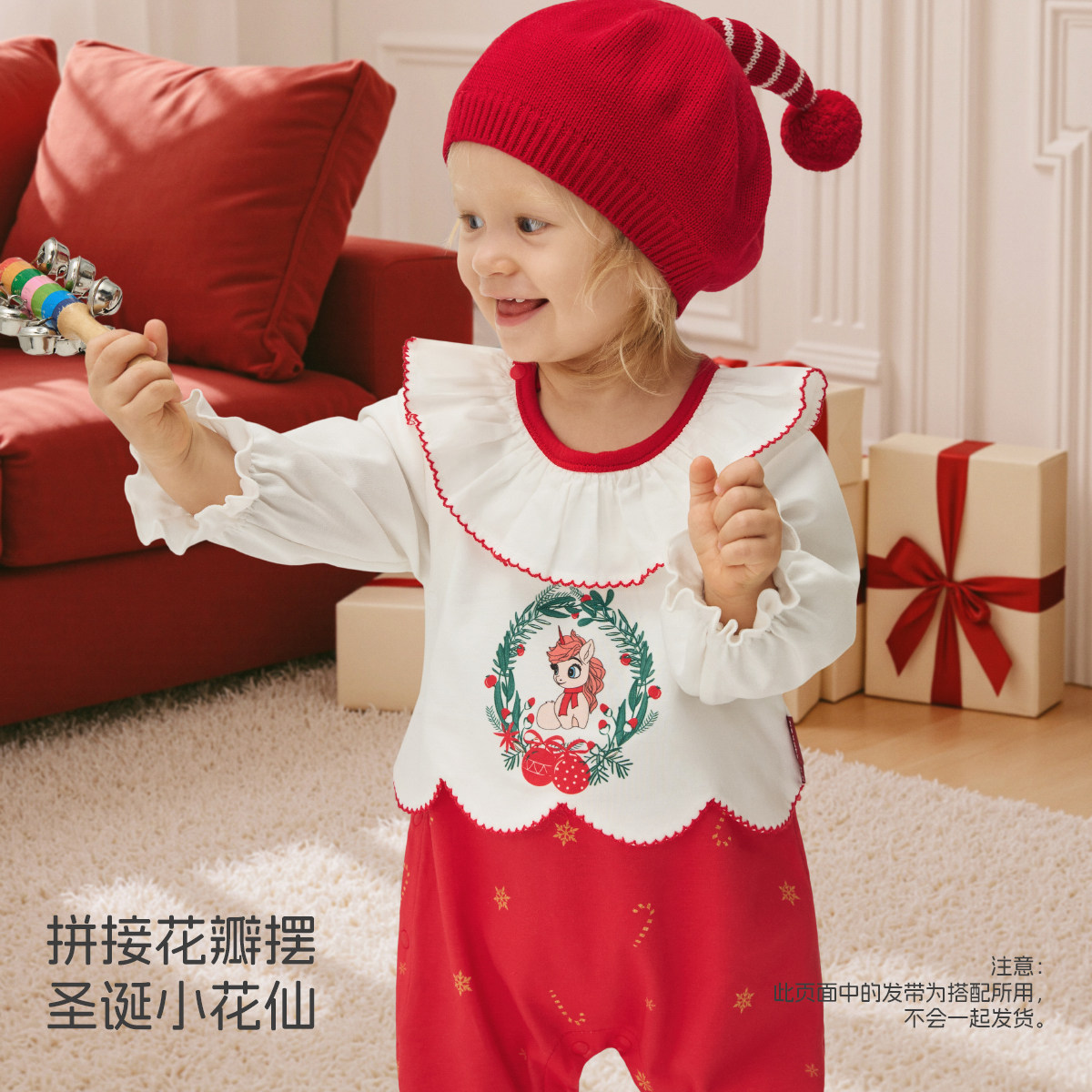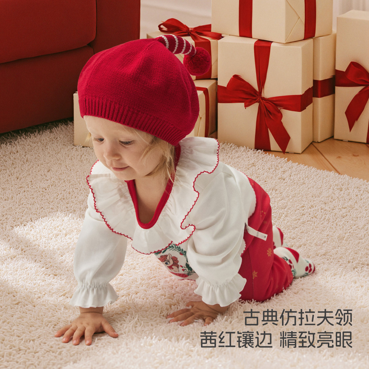 aqpa爱帕圣诞衣服婴儿连体衣新年红色拜年服春秋满月宝宝衣服外出