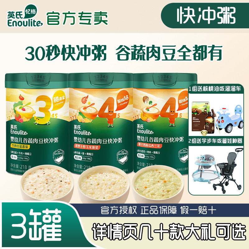 英氏快冲粥3罐辅食粥速食冲泡宝宝婴儿粥1岁英式米粉官方授权店