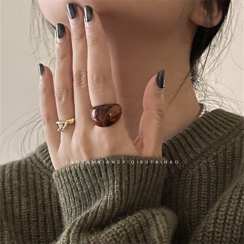 2024新款小众独特异形复古树脂戒指女冷淡风食指戒个性气质指环