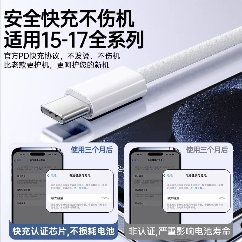 【官方正品】适用苹果快充数据线iPhone17/16/15/14充电线车载正品13proomax12pro原装手机typec接口充电器头