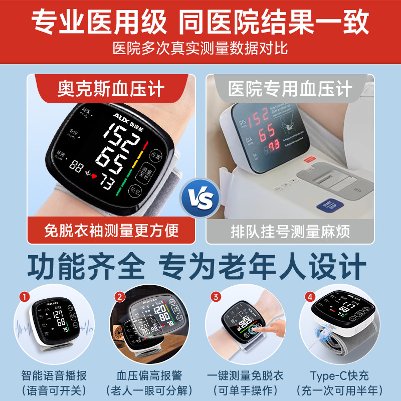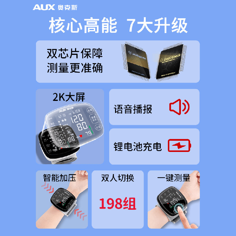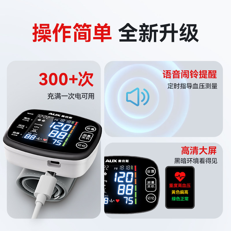 奥克斯医用手腕式电子血压计仪器老人监测量测压血压仪家用高精准