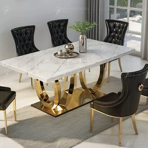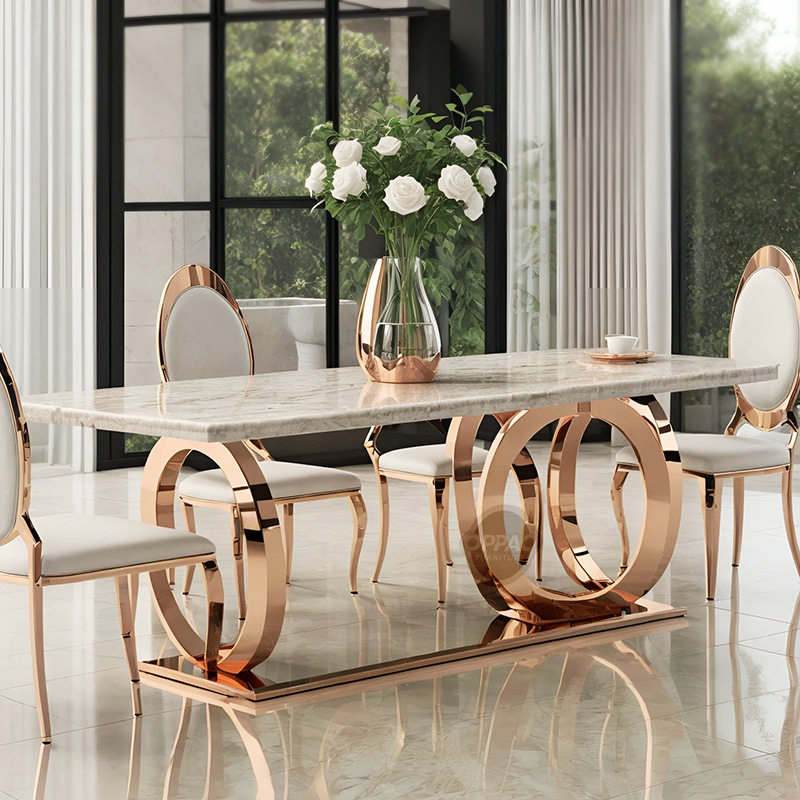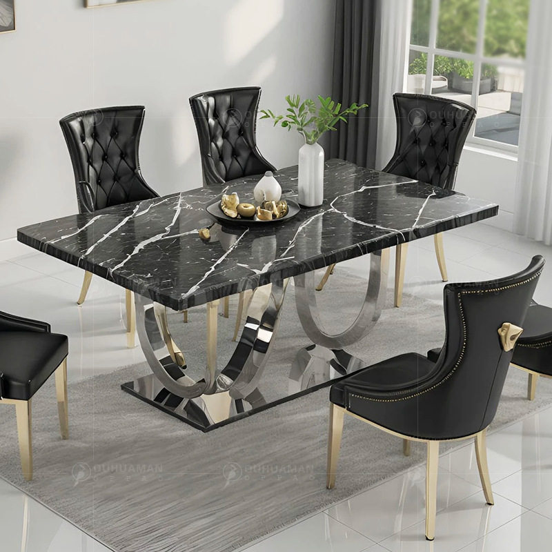 轻奢后现代不锈钢大理石餐桌椅家用大户型北欧高端别墅设计师餐台