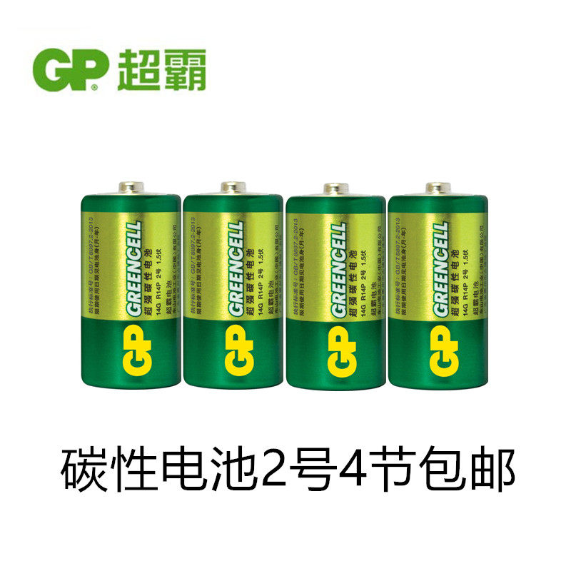 GP超霸2号电池1.5V碳性14g中号C型面包超人费雪玩具lr14电池4节