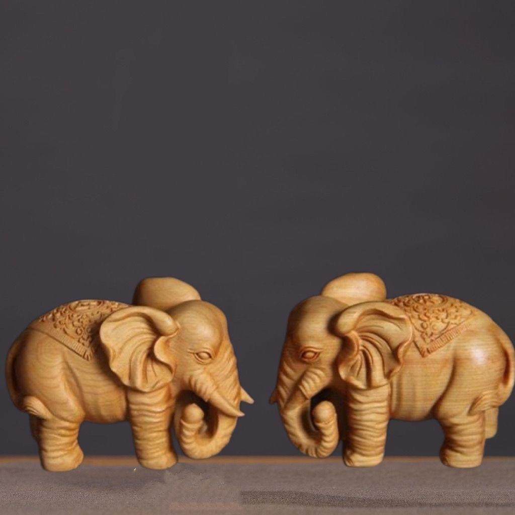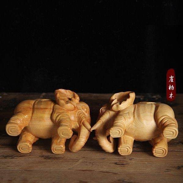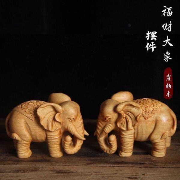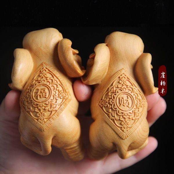崖柏木雕福财象摆件小叶黄杨富贵吉祥象实木雕刻工艺品桌面装饰品