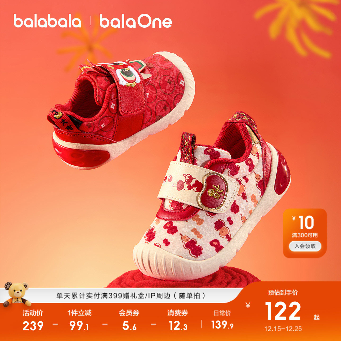 【balaOne】巴拉巴拉宝宝学步鞋新年红色鞋子秋冬2025新款婴儿鞋