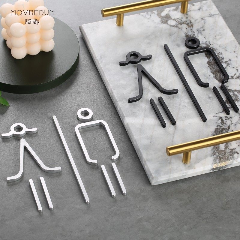新款创意男女洗手间门牌标识牌厕所牌卫生间提示牌金属铝3D立体字标牌蹲便坐便标识母婴室保洁室储藏间门牌