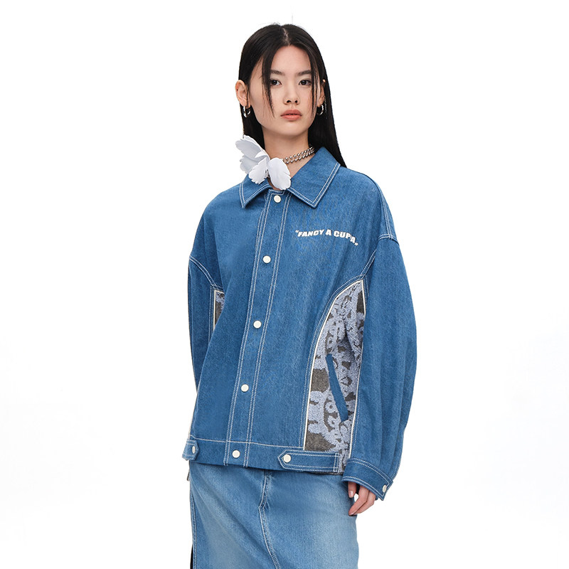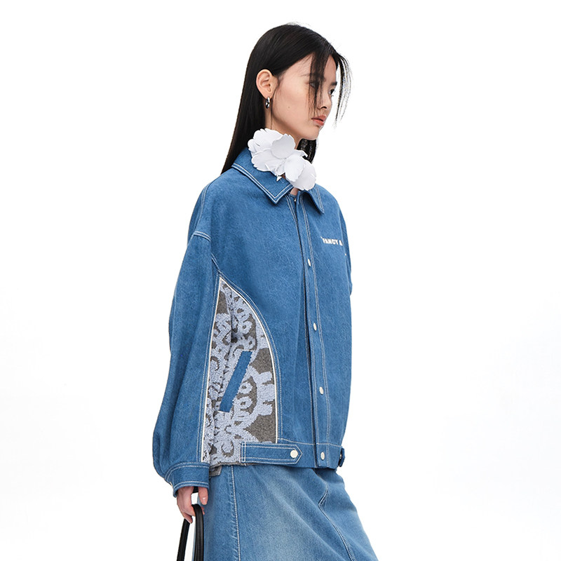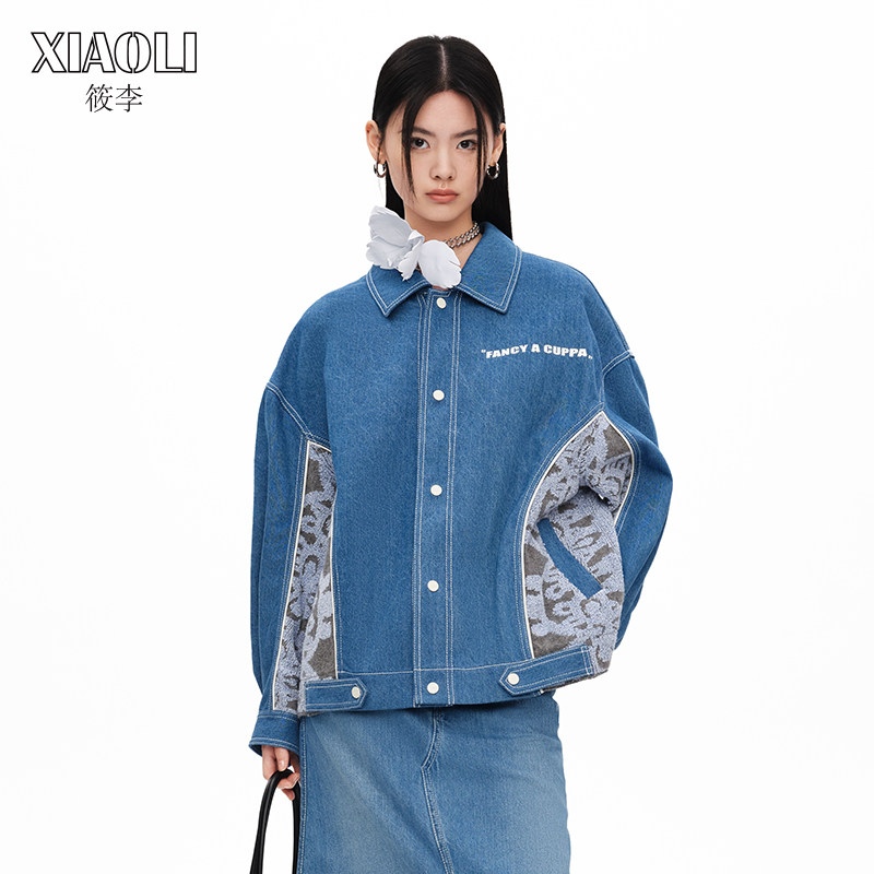 【设计师品牌XIAOLI筱李】23新款毛织拼接牛仔夹克外套