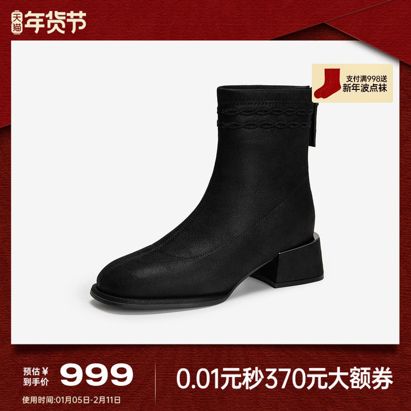 MIO米奥时装靴2025冬季新款圆头高跟增高弹力靴时尚百搭纯色女靴