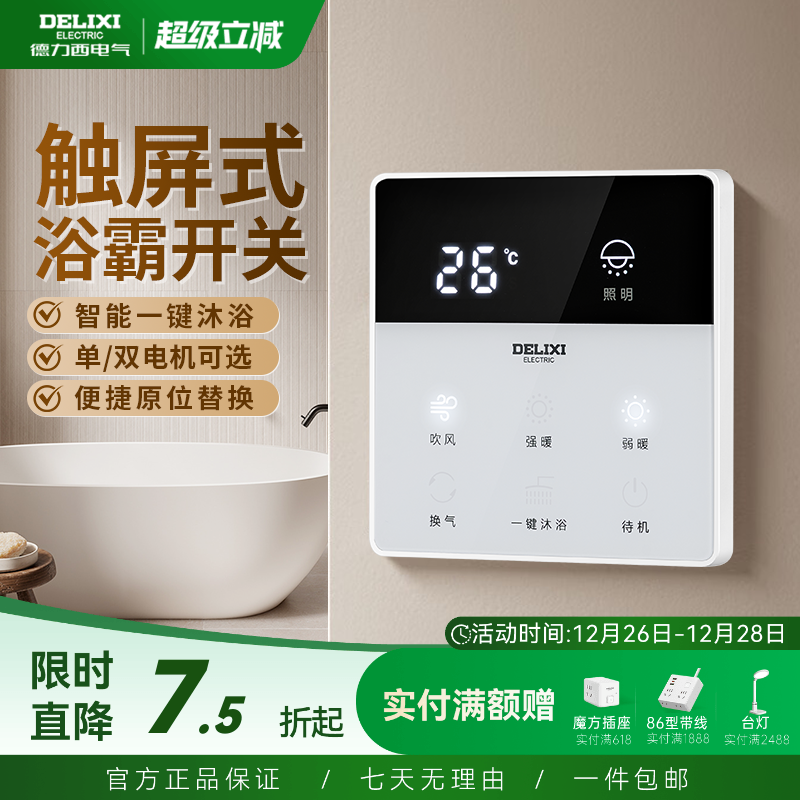 德力西智能浴霸开关七开合一浴霸智能卫生间浴室风暖风开关面板