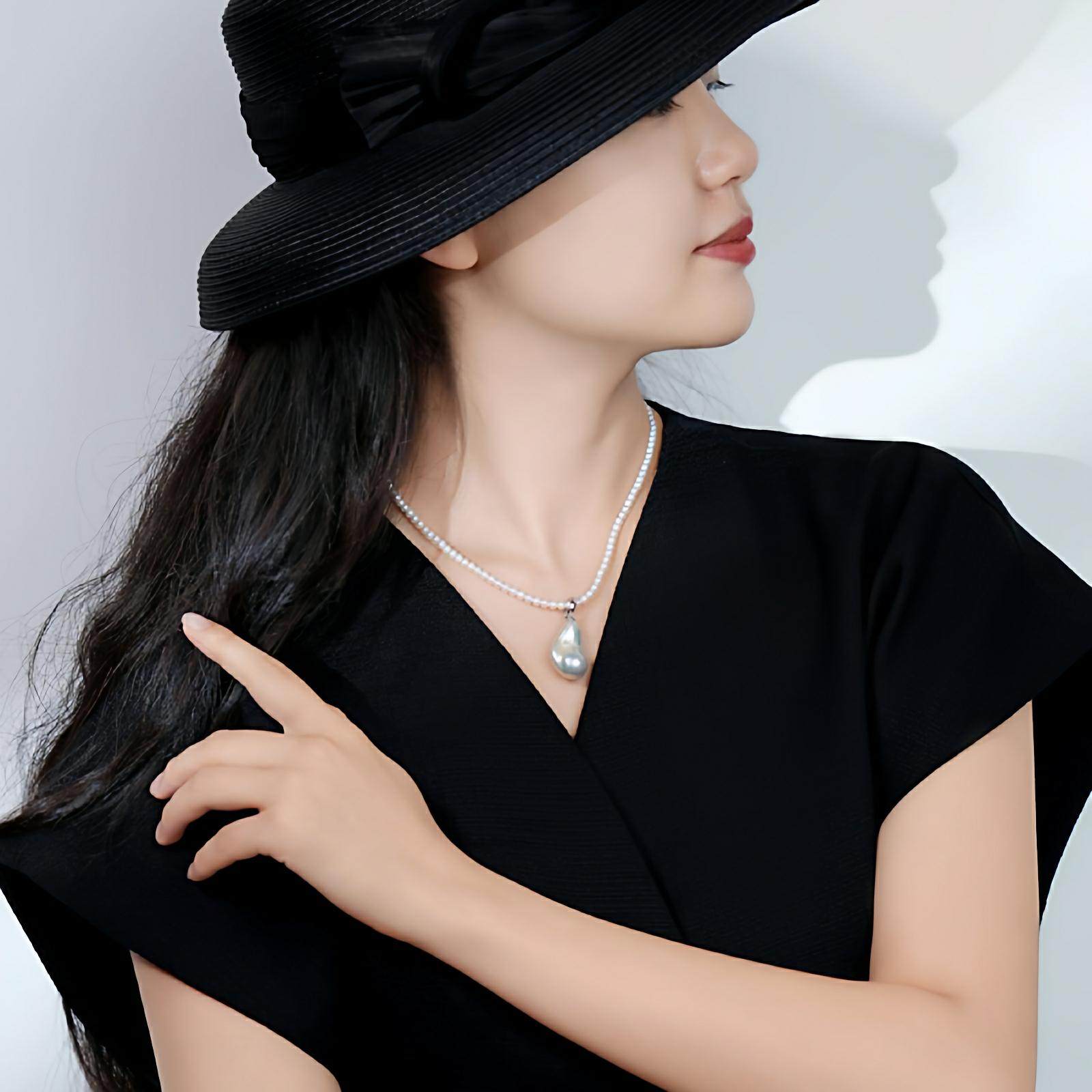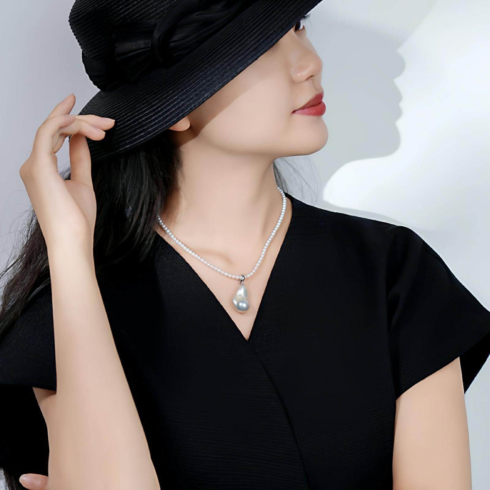 梵宝雅阁诸暨淡水巴洛克珍珠吊坠女S925银异形DIY锁骨链节日礼物